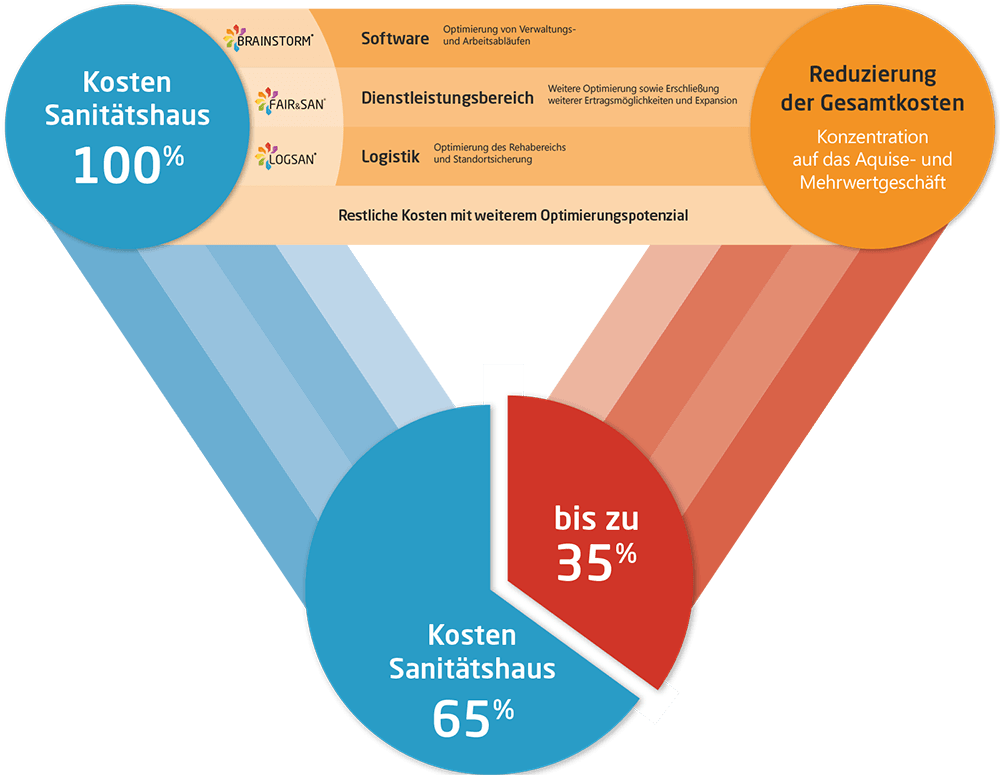 Als Sanitätshaus sind Sie in der Lage, die notwendigen Veränderungen, wie Prozessoptimierung, Kostenreduktion, Standortsicherung und Expansion mit einem beherzten Entschluss und einem derzeit einzigartigen Konzept umzusetzen. Mit FAIR&SAN.